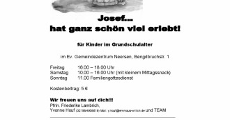 Wir beginnen am Samstag, den 25.10. um 10.00 Uhr in der Hubertus- Kirche, Schiefbahn, und gehen anschließend zum Spielen, Basteln, Singen usw. in den Leuchtturm, Königsheide 8-10.Dort können euch eure Eltern um 16.00 Uhr wieder abholen.