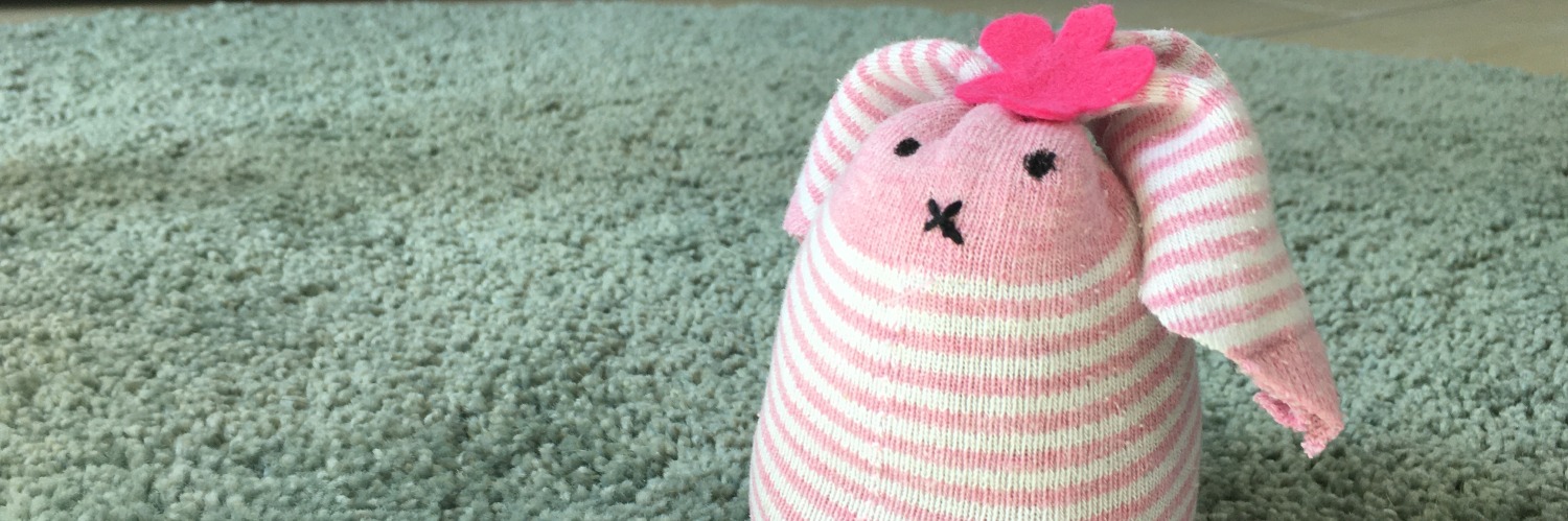 Bald steht Ostern vor der Tür, auch wenn es sich gerade vielleicht nicht so anfühlt. Gerade deswegen ist es vielleicht schön, noch schnell ein bisschen Osterdeko mit den Kindern zu basteln. Für diesen Sockenhasen benötigt man eine alte, zu kleine oder vereinsamte Socke. Diese wird zu 2/3 mit z.B. Reis, getrockneten Erbsen, Watte oder Stoffresten gefüllt. Darüber wird der Stoff Stramm mit einem Faden abgebunden. Dann schneidet man in den oberen Stoff vorne und hinten einen Schlitz, so dass er nach links und rechts fällt und zu Ohren geschnitten werden kann. Das Gesicht kann mit Edding oder Filzstift aufgemalt werden. Als Schwänzchen habe ich hinten einen Knopf angenäht. Mit Filz kann ein bisschen Deko - wie hier z.B. die Blume - angebracht werden.