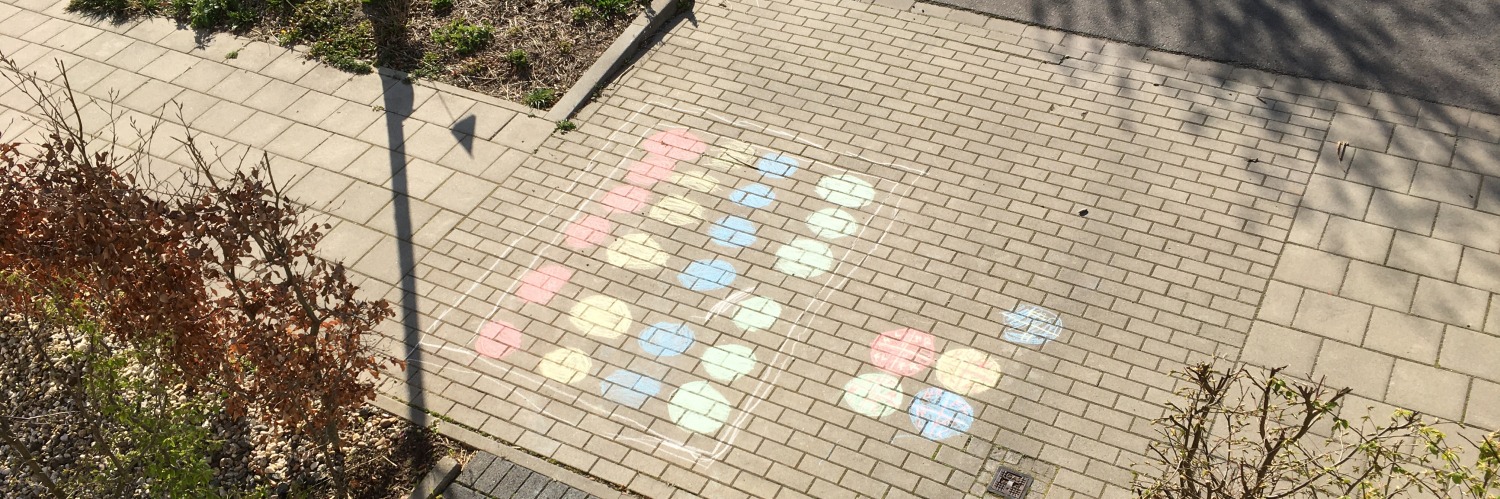 Ein Straßentwister ist ganz einfach mit Kreide aufgemalt. Es werden jeweils Felder in einer Reihe in Blau, Grün, Rot und Gelb aufgemalt. Um zu erwürfeln, welches Bein und welchen Fuß man auf welches Feld setzen muss, wird ein Extra - Feld mit allen 4 Farben aufgemalt. In jede Farbe malt man Felder und schreibt hinein Fuß - links o. rechts und Hand links oder rechts. So kann mit einem Steinchen geworfen werden und auf der Stein zeigt an, welcher Fuß oder welche Hand wohin gesetzt werden muss.